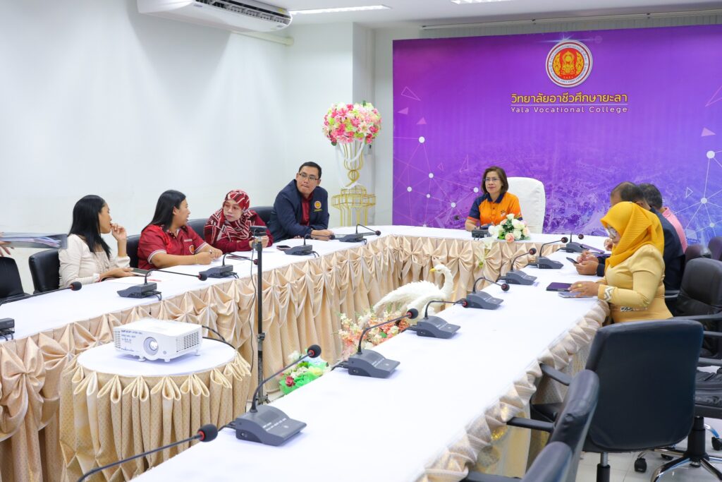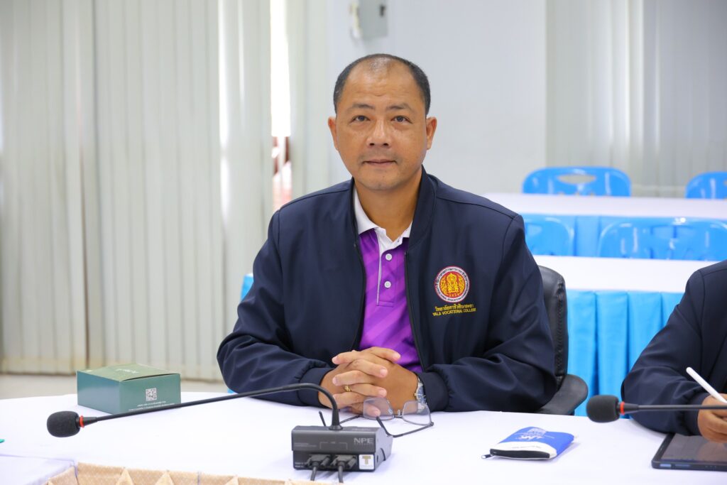 นางประกายแก้ว ศุภอักษร ผู้อำนวยการวิทยาลัยอาชีวศึกษายะลา เข้าร่วมการประชุมการประเมินความพร้อมและศักยภาพในการขออนุมัติเปิดสอนหลักสูตรอาชีวศึกษา หลักสูตรประกาศนียบัตรวิชาชีพชั้นสูง(ปวส.) พ.ศ.2567 ประเภทวิชาอุตสาหกรรม กลุ่มอาชีพเครื่องกลและยานยนต์ สาขาวิชาเทคนิคยานยนต์ไฟฟ้า วิทยาลัยเทคนิคยะลา และประเภทวิชาอุตสาหกรรม กลุ่มอาชีพเครื่องกลและยานยนต์ สาขาวิชาเทคโนโลยีอุตสาหกรรมตังถังและสีรถยนต์ วิทยาลัยการอาชีพเบตง ภาคเรียนที่ 1 ปีการศึกษา 2569 โดยมี นายทิว กาสิวุฒิ ผู้อำนวยการวิทยาลัยเทคนิคปัตตานี รักษาราชการแทน ผู้อำนวยการสถาบันการอาชีวศึกษาภาคใต้ 3 เป็นประธานการประชุม ณ ห้องประชุมอินทผาลัม วิทยาลัยเทคนิคยะลา