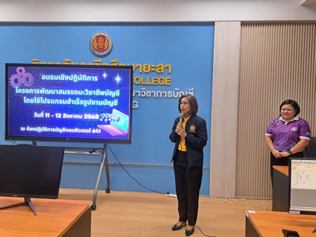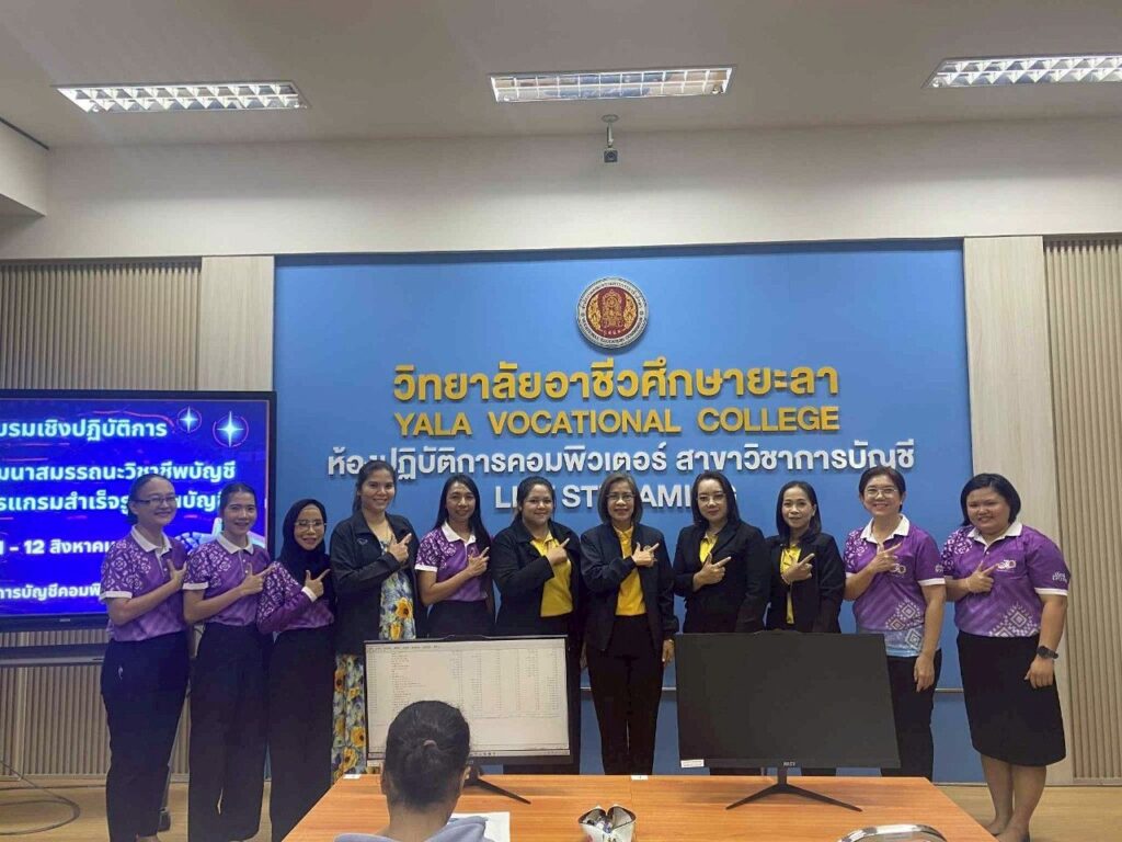 นางประกายแก้ว ศุภอักษร ผู้อำนวยการวิทยาลัยอาชีวศึกษายะลา เป็นประธานในพิธีเปิดโครงการ “การพัฒนาสมรรถนะวิชาชีพโดยใช้โปรแกรมสำเร็จรูปงานบัญชี” ซึ่งได้รับเกียรติจากสำนักงานตรวจสอบ เอส พี เค ธุรกิจการบัญชีและภาษีอากรในการเป็นวิทยากร โดยมีคณะครูและนักเรียน นักศึกษา แผนกวิชาการบัญชีเข้าร่วมโครงการดังกล่าว ทั้งสิ้นจำนวน 38 คน