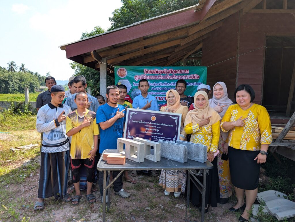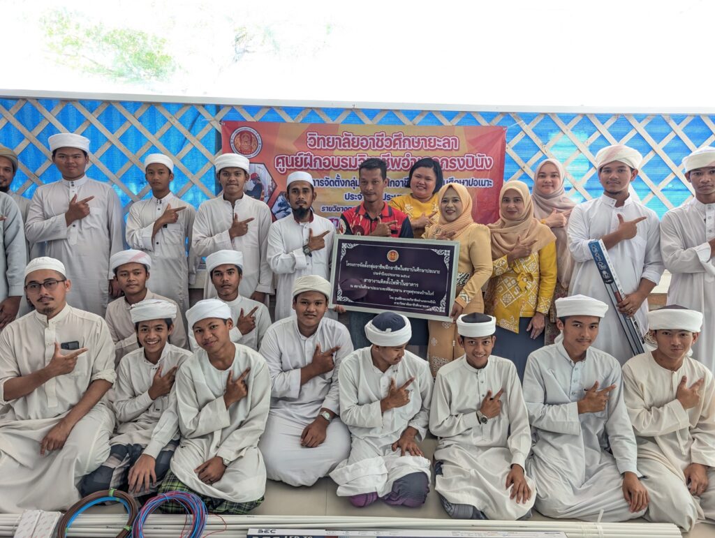 นางประกายแก้ว ศุภอักษร ผู้อำนวยการวิทยาลัยอาชีวศึกษายะลา มอบหมายให้ นางนูรีดา กูโน ทำหน้าที่รองผู้อำนวยการฯ ฝ่ายพัฒนากิจการนักเรียน นักศึกษา พร้อมด้วยคณะครู เจ้าหน้าที่ศูนย์ฝึกอบรมวิชาชีพอำเภอกรงปีนัง ดำเนินการ มอบวัสดุ – อุปกรณ์ ในการสนับสนุนการจัดตั้งกลุ่มอาชีพ/ฝึกอาชีพในสถาบันปอเนาะ จำนวน 4 กลุ่ม ได้แก่