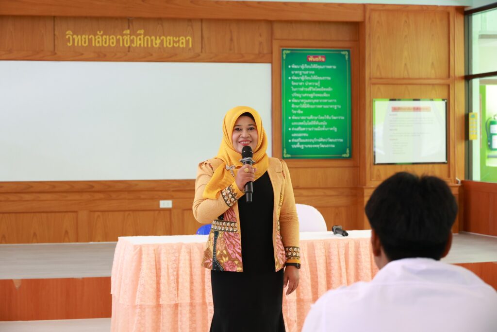 โดยมีคณะครู และบุคลากรทางการศึกษาที่เกี่ยวข้อง เข้าร่วมพิธี ณ ห้องประชุมรวงผึ้ง อาคารอำนวยการ วิทยาลัยอาชีวศึกษายะลา
