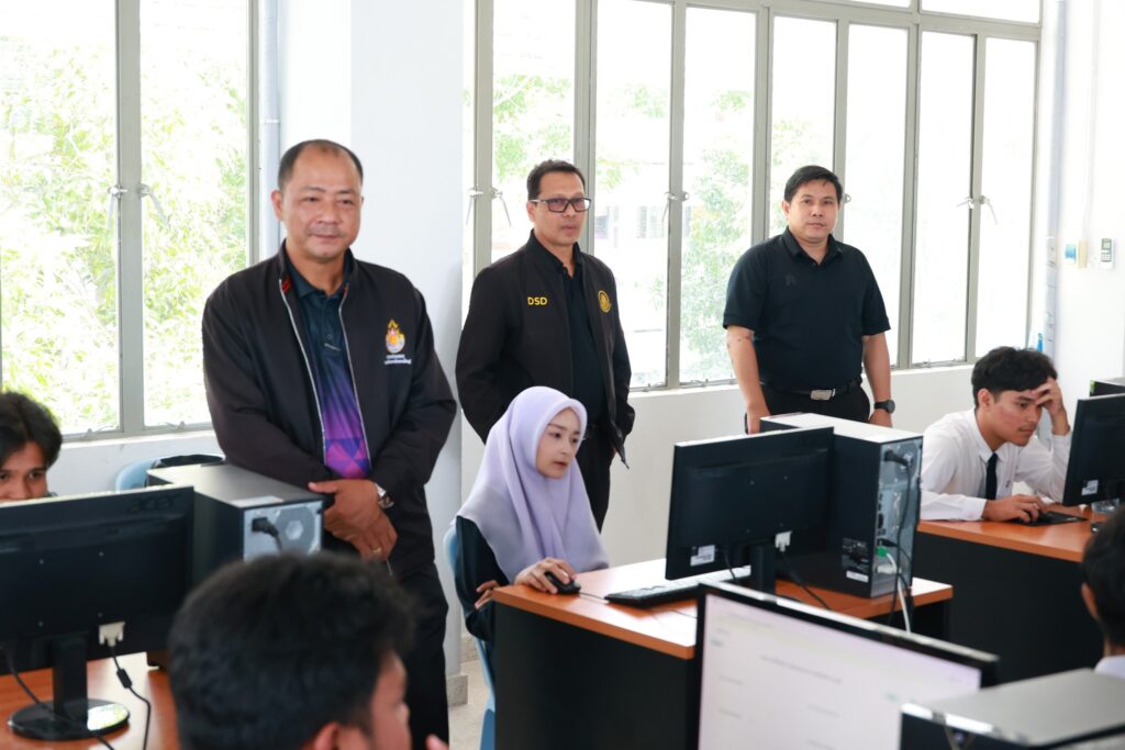 นางประกายแก้ว ศุภอักษร ผู้อำนวยการวิทยาลัยอาชีวศึกษายะลา มอบหมายให้ นายวสุชากร แก้วไฝ รองผู้อำนวยการฯ ฝ่ายวิชาการ เยี่ยมให้กำลังใจนักศึกษา ระดับชั้นประกาศนียบัตรวิชาชีพชั้นสูง (ปวส.) ในการทดสอบมาตรฐานฝีมือแรงงาน แห่งชาติ สาขาพนักงานการใช้คอมพิวเตอร์ (ประมวลผลคำ) ระดับ 1 ณ ห้องปฏิบัติการคอมพิวเตอร์ 735, 731