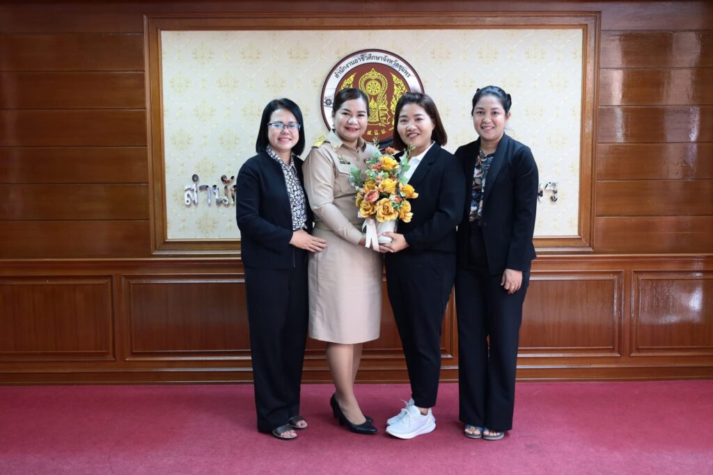 นางประกายแก้ว ศุภอักษร ผู้อำนวยการวิทยาลัยอาชีวศึกษายะลา มอบหมายให้ นายวสุชากร แก้วไฝ รองผู้อำนวยการ ฝ่ายวิชาการ พร้อมด้วยคณะครู และบุคลากรทางการศึกษา ร่วมแสดงความยินดีกับนางสาวนรีกานต์ บุญราศรี ในโอกาสได้รับการแต่งตั้งให้ดำรงตำแหน่ง รองผู้อำนวยการ วิทยาลัยอาชีวศึกษาชุมพร