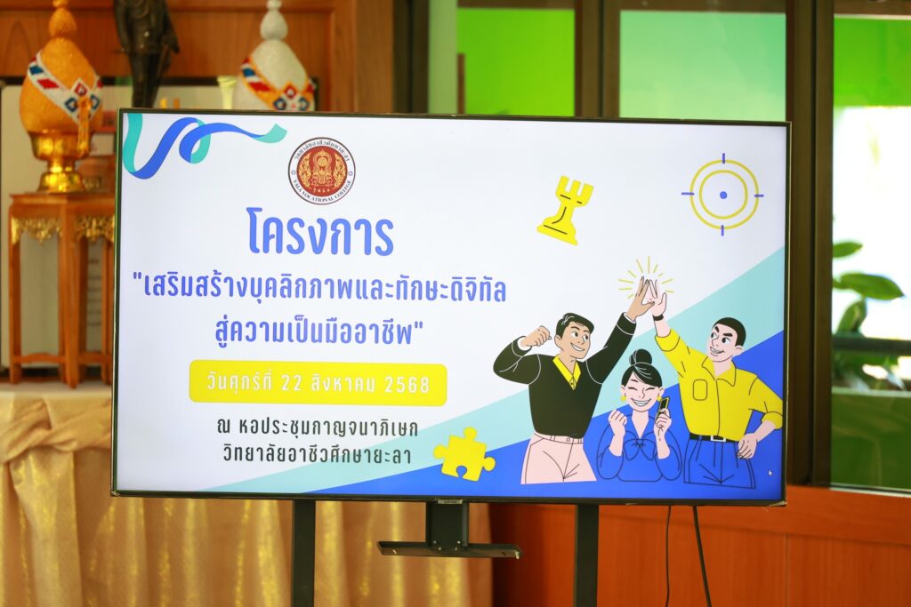 นางประกายแก้ว ศุภอักษร ผู้อำนวยการวิทยาลัยอาชีวศึกษายะลา มอบหมายให้ นายเอกองค์ หลงราม รองผู้อำนวยการฯ ฝ่ายแผนงานและความร่วมมือ เป็นประธานในพิธีเปิดโครงการเสริมสร้างบุคลิกภาพและทักษะดิจิทัลสู่ความเป็นมืออาชีพ โดยมี นางนูรีดา กูโน ปฏิบัติหน้าที่ รองผู้อำนวยการฯ ฝ่ายพัฒนากิจการนักเรียน นักศึกษา กล่าวรายงาน ซึ่งได้รับเกียรติจาก นายกฤติเดช พรหมเพชร ครูวิทยาลัยเทคนิคยะลา และคณะ เป็นวิทยากรบรรยายความรู้แก่นักเรียน นักศึกษา ณ ห้องประชุมปาหนัน อาคาร 1 วิทยาลัยอาชีวศึกษายะลา