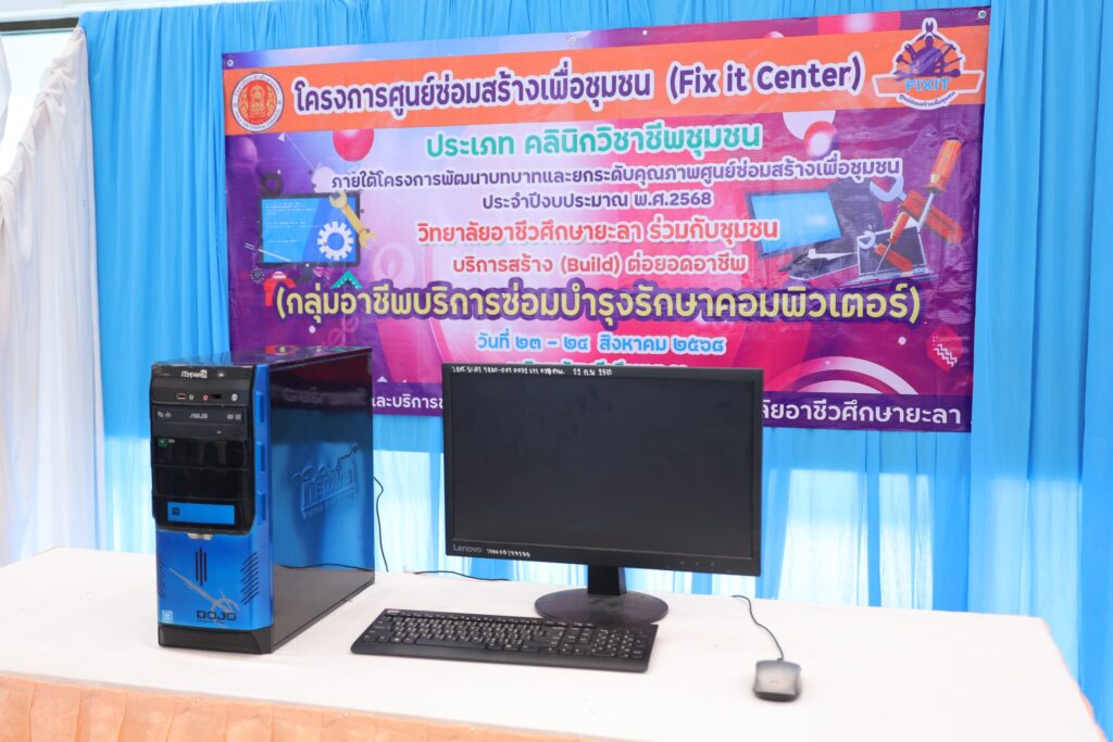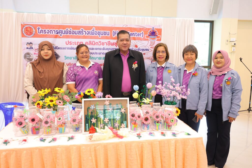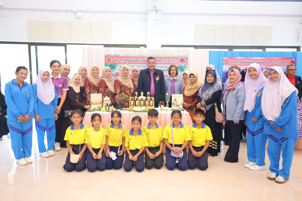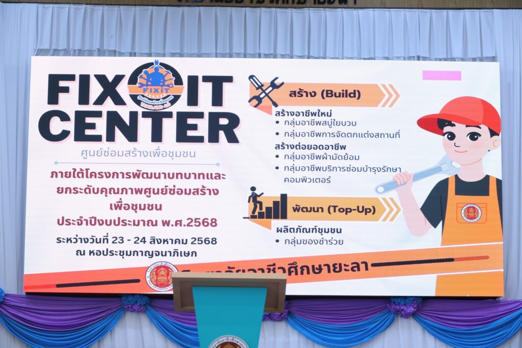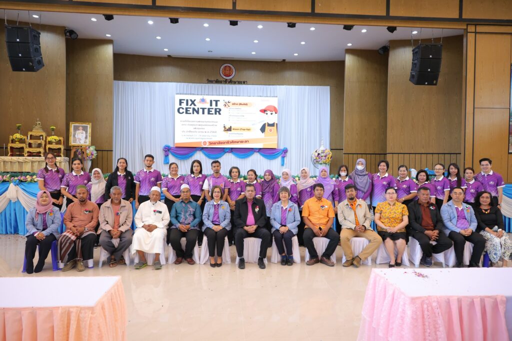 นางประกายแก้ว ศุภอักษร ผู้อำนวยการวิทยาลัยอาชีวศึกษายะลา พร้อมด้วยคณะผู้บริหาร ครู ให้การต้อนรับ นายคุณากร สุทธิโมกข์ ปลัดอาวุโส อำเภอเมืองยะลา ประธานในพิธีเปิดโครงการศูนย์ซ่อมสร้างเพื่อชุมชน (Fix it – Center) ประเภทคลีนิกวิชาชีพชุมชน ภายใต้โครงการพัฒนาบทบาทและยกระดับคุณภาพศูนย์ซ่อมสร้างเพื่อชุมชน ประจำปีงบประมาณ พ.ศ. 2568 ประกอบด้วย
