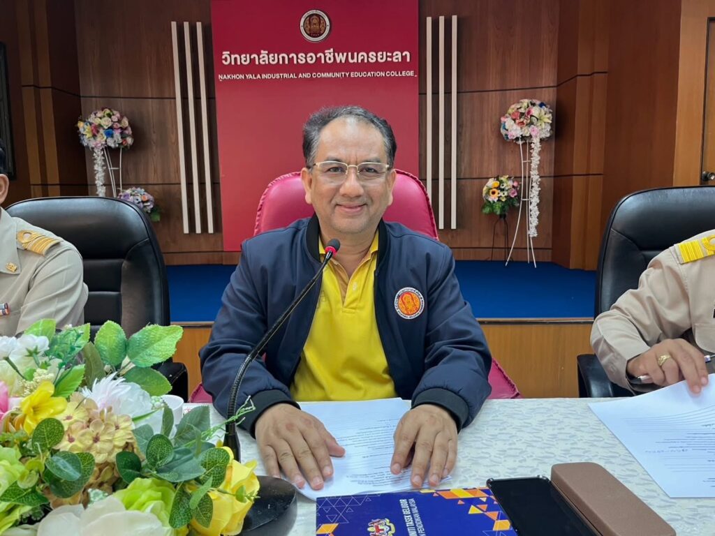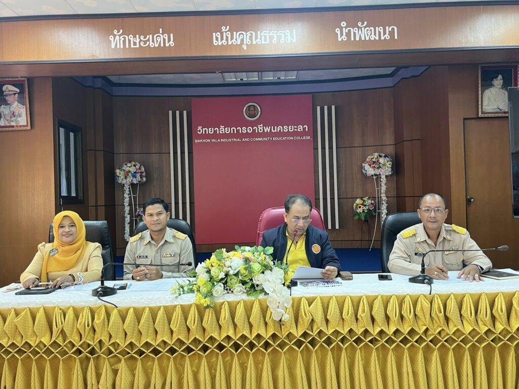 นางประกายแก้ว ศุภอักษร ผู้อำนวยการวิทยาลัยอาชีวศึกษายะลา มอบหมายให้ นายวสุชากร แก้วไฝ รองผู้อำนวยการฝ่ายวิชาการ และ นางนูรีดา กูโน รองผู้อำนวยการฝ่ายพัฒนากิจการนักเรียน นักศึกษา คณะครู ดำเนินการประชุมคณะกรรมการดำเนินงานกิจกรรมลูกเสือวิสามัญวิทยาลัยการอาชีพนครยะลา และวิทยาลัยอาชีวศึกษายะลา โครงการเดินทางไกลและอยู่ค่าพักแรม ครั้งที่1/2568 ณ ห้องประชุมสะเตง วิทยาลัยการอาชีพนครยะลา