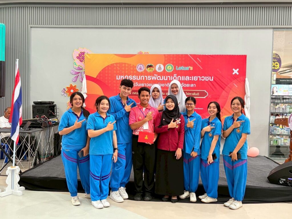 นางประกายแก้ว ศุภอักษร ผู้อำนวยการวิทยาลัยอาชีวศึกษายะลา มอบหมายให้ นางสาวยามีละห์ ดะซง เจ้าหน้าที่งานองค์การนักวิชาชีพในอนาคตแห่งประเทศไทย วิทยาลัยอาชีวศึกษายะลา นำตัวแทนนักเรียน นักศึกษา เข้าร่วมกิจกรรม “มหกรรมการพัฒนาเด็ก และเยาวชน (วันเยาวชนแห่งชาติ) จังหวัดยะลา ประจำปี 2568″ โดยมี นายก้องสกุล จันทราช รองผู้ว่าราชการจังหวัดยะลา เป็นประธานในพิธีเปิด ณ ลานกิจกรรมห้างสรรพสินค้าโลตัสยะลา อำเภอเมืองยะลา จังหวัดยะลา