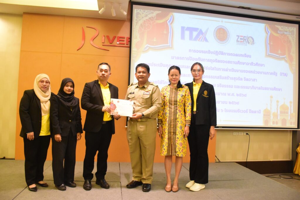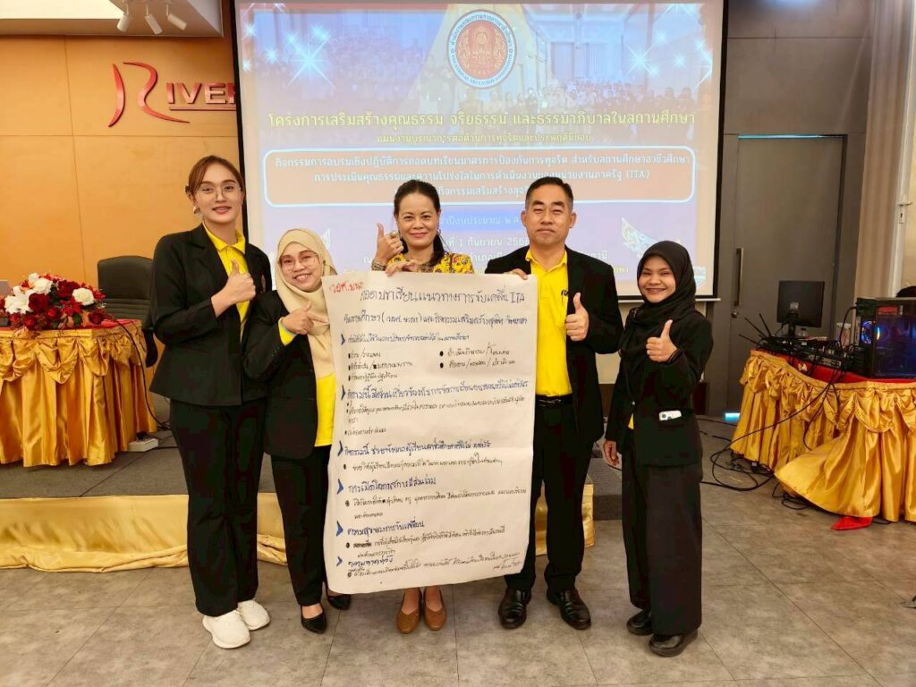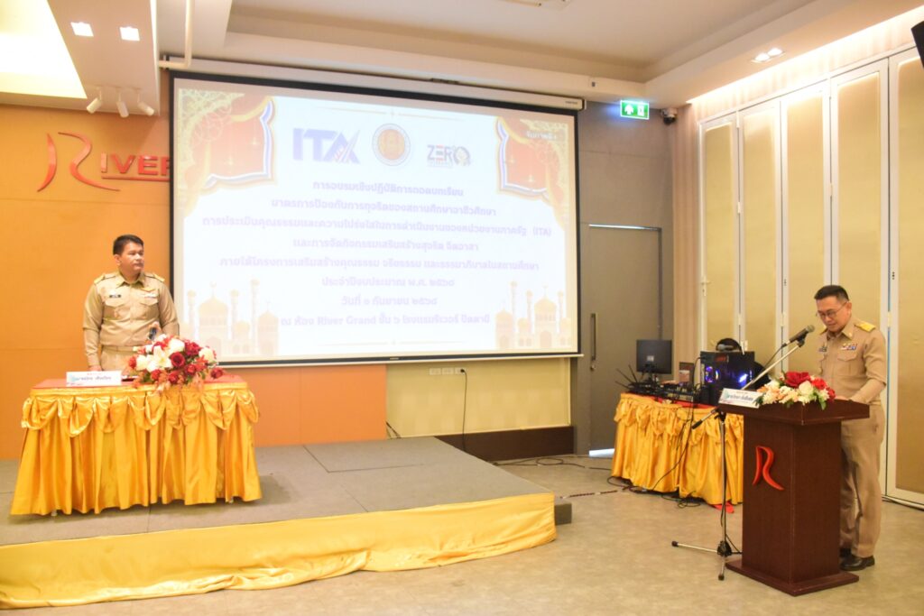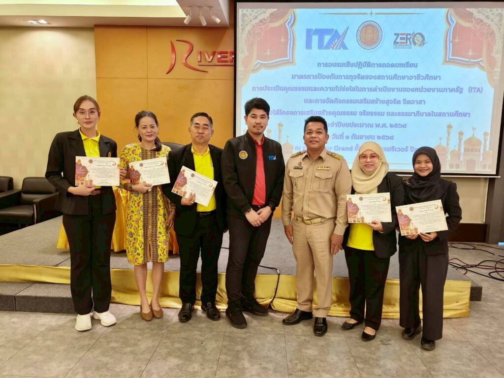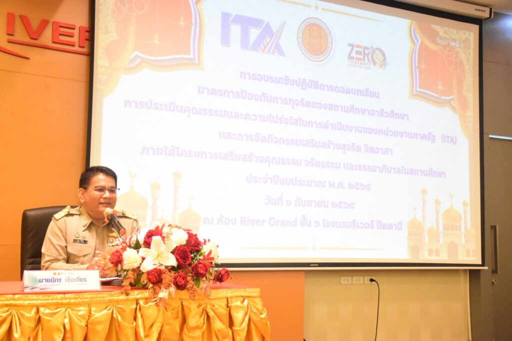 นางประกายแก้ว ศุภอักษร ผู้อำนวยการวิทยาลัยอาชีวศึกษายะลา มอบหมายให้นายเอกองค์ หลงราม รองผู้อำนวยการฝ่ายแผนงานและความร่วมมือ พร้อมด้วยคณะครูและบุคลากรทางการศึกษา เข้าร่วมพิธีเปิดและการอบรมเชิงปฏิบัติการ “ถอดบทเรียนมาตรการป้องกันการทุจริตสำหรับสถานศึกษาอาชีวศึกษา การประเมินคุณธรรมและความโปร่งใสในการดำเนินงานของหน่วยงานภาครัฐ (ITA) และการจัดกิจกรรมเสริมสร้างสุจริต จิตอาสา” ประจำปีงบประมาณ พ.ศ. 2568