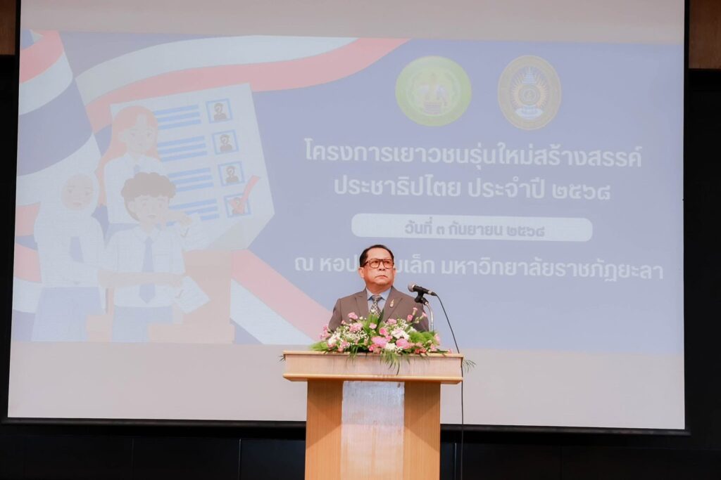 นางประกายแก้ว ศุภอักษร ผู้อำนวยการวิทยาลัยอาชีวศึกษายะลา มอบหมายให้ นางสาวนายีบะห์ กาซอ หัวหน้างานกิจกรรมนักเรียน นักศึกษา พร้อมด้วย นางสาวนูรฮูดา เจ๊ะอามะ ครูแผนกวิชาสามัญ-สัมพันธ์ นำนักเรียน นักศึกษาเข้าร่วมโครงการเยาวชนรุ่นใหม่สร้างสรรค์ประชาธิปไตย ประจำปี 2568 โดยมี นายเฉลิมพล เรืองเริงกุลฤทธิ์ รองนายกองค์การบริหารส่วนจังหวัดยะลา เป็นประธานเปิดโครงการ ณ หอประชุมเล็ก มหาวิทยาลัยราชภัฎยะลา