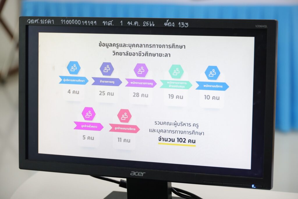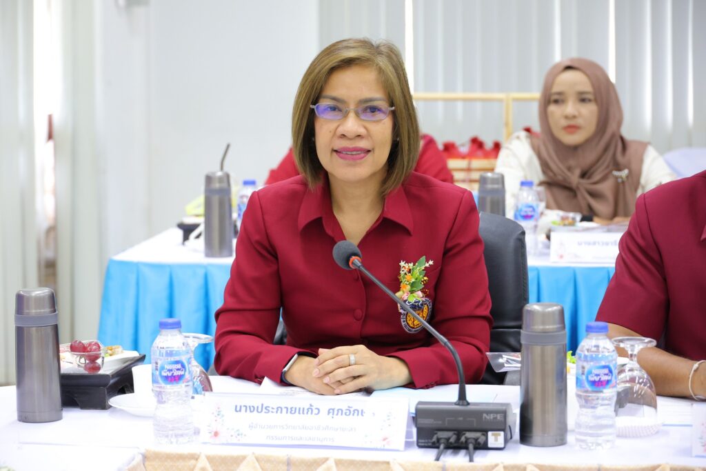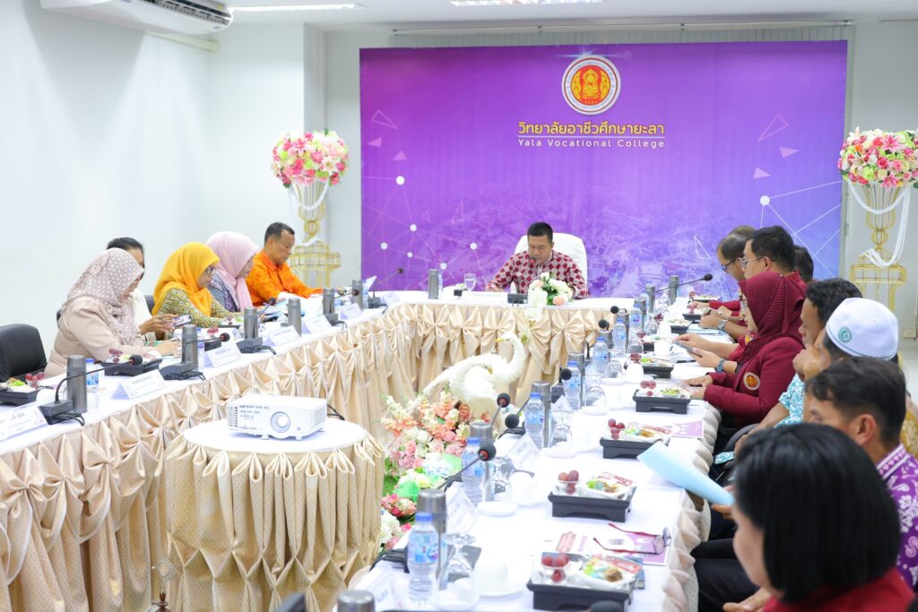 นางประกายแก้ว ศุภอักษร ผู้อำนวยการวิทยาลัยอาชีวศึกษายะลา พร้อมด้วยคณะผู้บริหาร ให้การต้อนรับ นายอภิชาติ ศรีสุวรรณ์ นายอำเภอกรงปินัง ประธานในการประชุมคณะกรรมการศูนย์ฝึกอบรมวิชาชีพอำเภอกรงปินัง ครั้งที่ 1 ปีงบประมาณ 2568 สรุปผลการดำเนินงาน ประจำปีงบประมาณ 2567-2568 โดยมี ปลัดอาวุโสอำเภอกรงปินัง ผู้แทนพัฒนาการอำเภอกรงปินัง ผู้แทน ผอ.ศูนย์ส่งเสริมการเรียนรู้ระดับอำเภอกรงปินัง ผู้อำนวยการสำนักงานการศึกษาเอกชนอำเภอกรงปินัง ผู้อำนวยการโรงเรียนบ้านสะเอะ กำนันตำบลกรงปินัง ผู้แทนนายก อบต.สะเอะ ผู้แทนอิหม่ามมัสยิดอีบาดุลเราะห์มาน คณะครู และบุคลากรที่เกี่ยวข้อง เข้าร่วมการประชุม ณ ห้องประชุมรวงผึ้ง อาคารอำนวยการ วิทยาลัยอาชีวศึกษายะลา