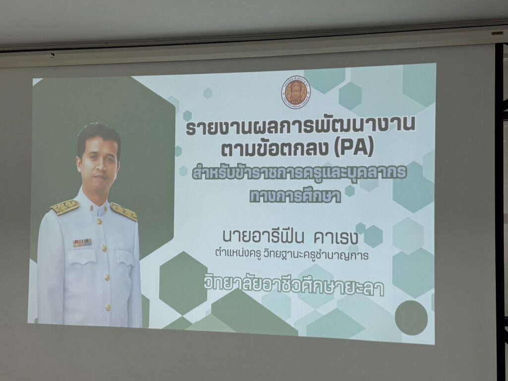 นางประกายแก้ว ศุภอักษร ผู้อำนวยการวิทยาลัยอาชีวศึกษายะลา มอบหมายให้ นายวสุชากร แก้วไฝ รองผู้อำนวยการฯ ฝ่ายวิชาการ เป็นประธานในการประเมินผลการพัฒนางานตามข้อตกลง (PA) ประจำปี 2568 ของข้าราชการครูและบุคลากรทางการศึกษา ดังนี้