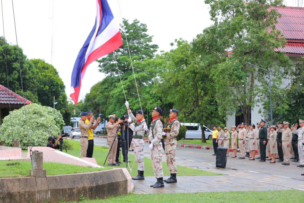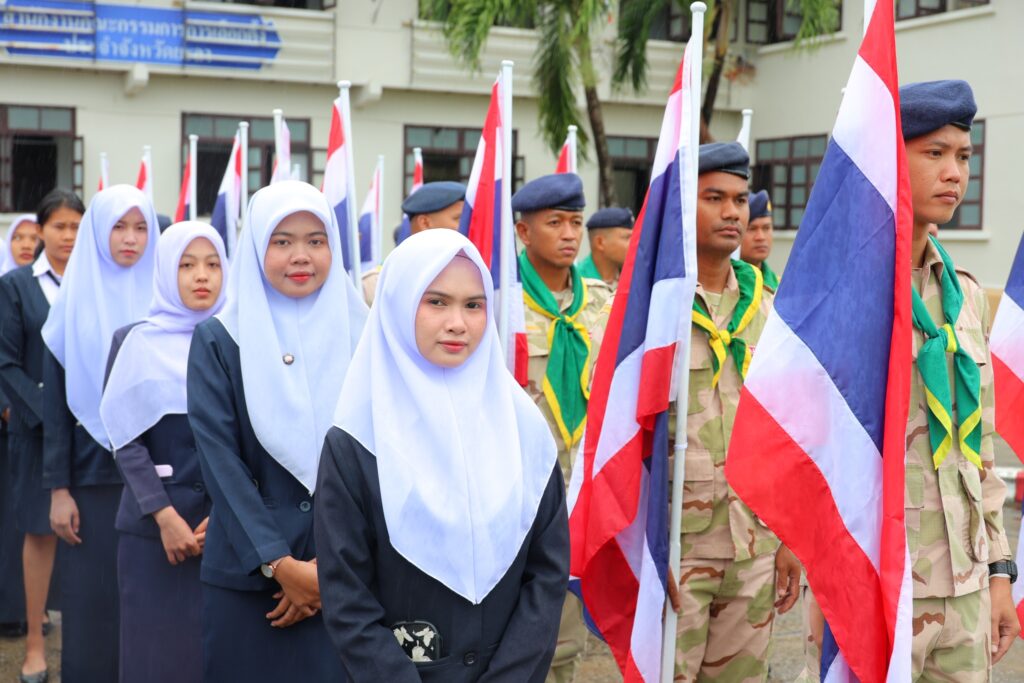 นางประกายแก้ว ศุภอักษร ผู้อำนวยการวิทยาลัยอาชีวศึกษายะลา พร้อมด้วย นายพงศธร วรรธนะปิติ รองผู้อำนวยการฯ ฝ่ายบริหารทรัพยากร คณะครู และบุคลากรทางการศึกษา ร่วมกิจกรรมเคารพธงชาติและร้องเพลงชาติไทย แสดงออกถึงความจงรักภักดี ต่อสถาบันชาติ ศาสนา และพระมหากษัตริย์ เนื่องในวันพระราชทานธงชาติไทย 28 กันยายน (Thai National Flag Day) ณ ลานหน้าเสาธง อาคาร 1 ศาลากลางจังหวัดยะลา อ.เมือง จ.ยะลา