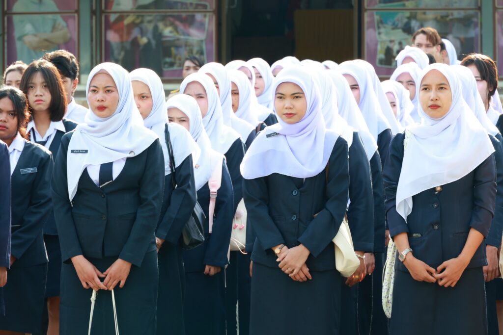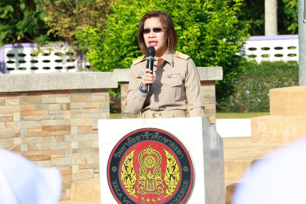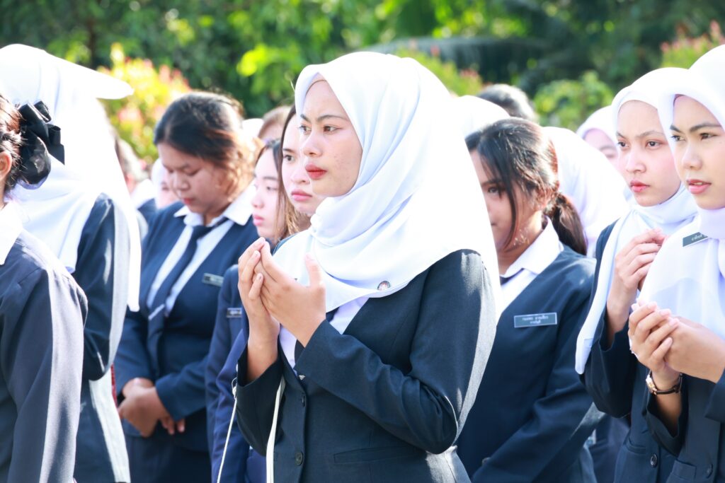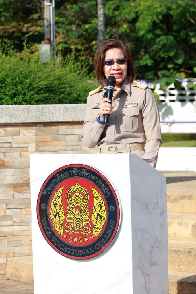 นางประกายแก้ว ศุภอักษร ผู้อำนวยการ วิทยาลัยอาชีวศึกษายะลา พร้อมด้วยคณะผู้บริหาร คณะครู บุคลากรทางการศึกษา ร่วมให้การต้อนรับนักเรียน นักศึกษา ในกิจกรรมหน้าเสาธง เข้าแถวเคารพธงชาติ สวดมนต์ กล่าวดุอาร์ และกล่าวคำปฏิญาณตน โดยมีผู้อำนวยการวิทยาลัยอาชีวศึกษายะลา พบปะและกล่าวให้โอวาทกับนักเรียน นักศึกษา ในวันเปิดภาคเรียนที่ 2 ประจำปีการศึกษา 2568 และมี นายเสรี ภักดี รองผู้อำนวยการฯ ฝ่ายพัฒนากิจการนักเรียน นักศึกษา แนะนำตัวเนื่องในโอกาสย้ายและได้รับการแต่งตั้งให้ดำรงตำแหน่ง รองผู้อำนวยการฯ และร่วมพบปะนักเรียน นักศึกษา ณ บริเวณหน้าเสาธง อาคารอำนวยการ วิทยาลัยอาชีวศึกษายะลา