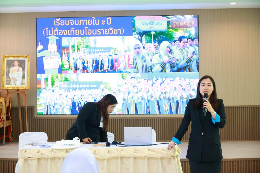 นางประกายแก้ว ศุภอักษร ผู้อำนวยการวิทยาลัยอาชีวศึกษายะลา มอบหมายให้ หัวหน้างานแนะแนว และเจ้าหน้าที่งานฯ พร้อมด้วยนักศึกษา เข้าร่วมรับฟังโครงการแนะแนวสัญจร เพื่อเปิดรับสมัครนักศึกษาใหม่ ประจาปีการศึกษา ๒๕๖๙ เพื่อเป็นการขยายโอกาสทางการศึกษาให้กับนักเรียนที่สนใจ และมีความมุ่งมั่น ที่จะเข้าศึกษาต่อ ณ วิทยาลัยรัตภูมิ มหาวิทยาลัยเทคโนโลยี ราชมงคลศรีวิชัย ซึ่งวิทยาลัยรัตภูมิมีการเปิดสอน ในระดับประกาศนียบัตรวิชาชีพชั้นสูง (ปวส.) ระดับปริญญาตรี (ต่อเนื่อง) ตามการรับรองมาตรฐานคุณภาพการศึกษา ซึ่งเรายึดมั่นและมุ่งเน้นทาพันธกิจ การศึกษาตามอัตลักษณ์ของมหาวิทยาลัยเทคโนโลยีราชมงคลศรีวิชัย คือ การผลิต “นักปฏิบัติ มืออาชีพ” ณ ห้องประชุมปาหนัน อาคาร 1 ชั้น 2 วิทยาลัยอาชีวศึกษายะลา