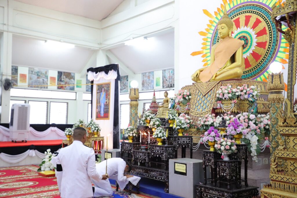 พร้อมด้วย นายพงศธร วรรธนะปิติ รองผู้อำนวยการฝ่ายบริหารทรัพยากร คณะครู และบุคลากรทางการศึกษา เข้าร่วมพิธีบำเพ็ญกุศลสัตตมวาร (7 วัน) เพื่อถวายเป็นพระราชกุศลแด่ สมเด็จพระนางเจ้าสิริกิติ์ พระบรมราชินีนาถ พระบรมราชชนนีพันปีหลวง โดยมี นายศุภชัย ฟูจิตร์ ผู้พิพากษาหัวหน้าศาลเยาวชนและครอบครัวจังหวัดยะลา เป็นประธานในพิธี ณ ศาลาการเปรียญ วัดพุทธภูมิ พระอารามหลวง อำเภอเมืองยะลา จังหวัดยะลา