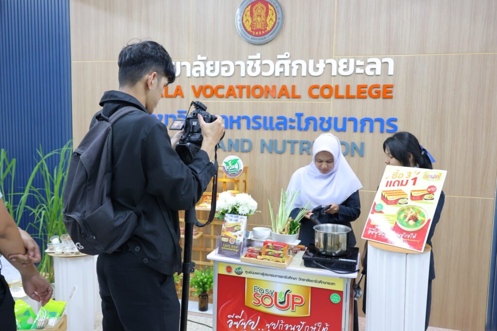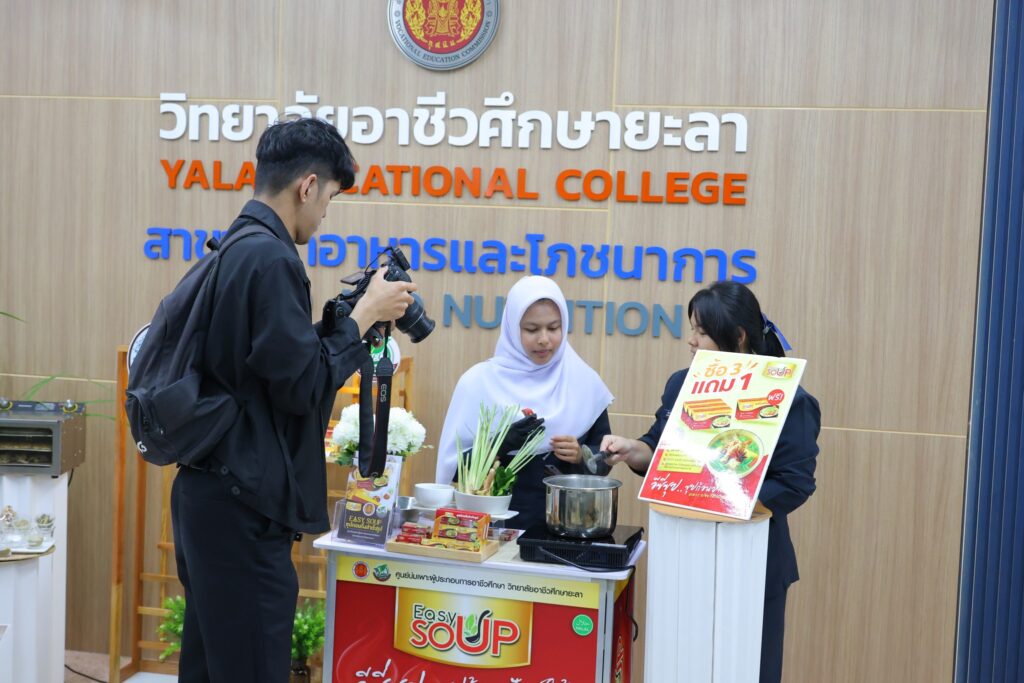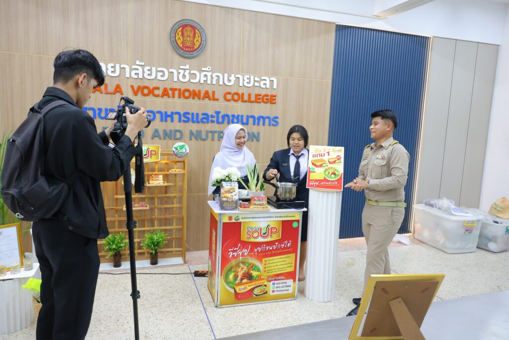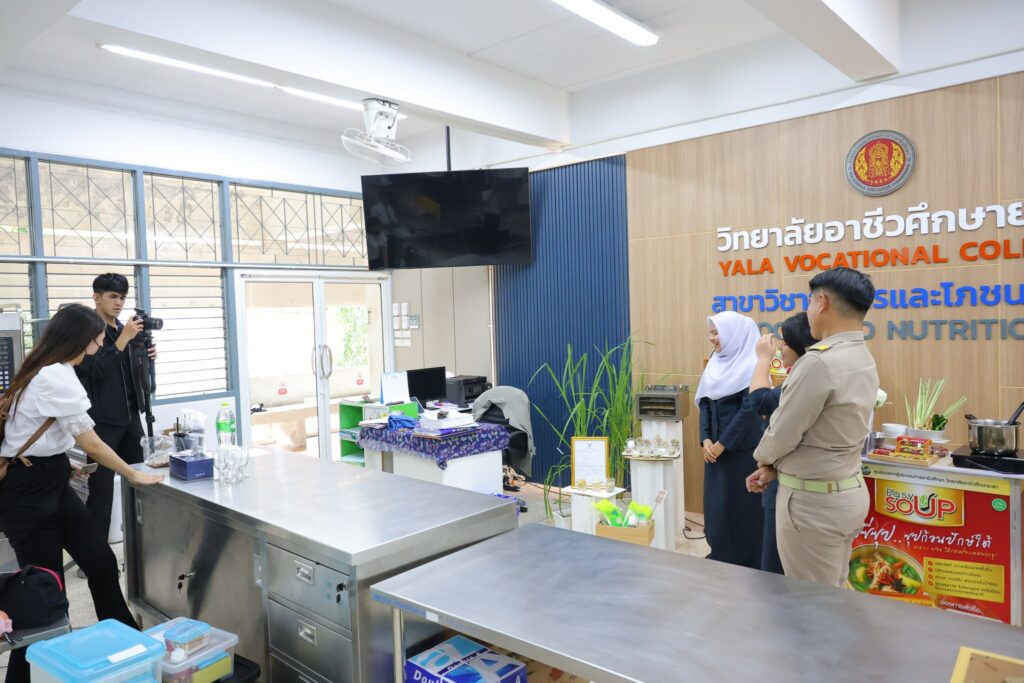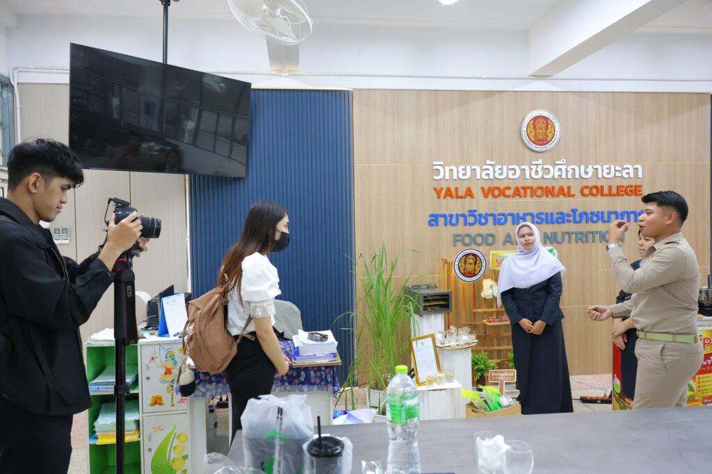 นางประกายแก้ว ศุภอักษร ผู้อำนวยการวิทยาลัยอาชีวศึกษายะลา มอบหมายให้ นายอริส พยายาม ครูแผนกวิชาอาหารและโภชนาการ พร้อมด้วยนักศึกษา ให้สัมภาษณ์กับทีมจากศูนย์ประชาสัมพันธ์ กองอำนวยการรักษาความมั่นคงภายใตภาค 4 ส่วนหน้า เพื่อบันทึกเทปรายการ “ต้นกล้าพันธ์ใหม่” ตอน อีซี่ซุปมลายู เพื่อนำไปเผยแพร่ทางช่อง สถานีวิทยุโทรทัศน์กองทัพบก ณ ห้องปฏิบัติการครัวเบเกอรี่ อาคาร 3 วิทยาลัยอาชีวศึกษายะลา