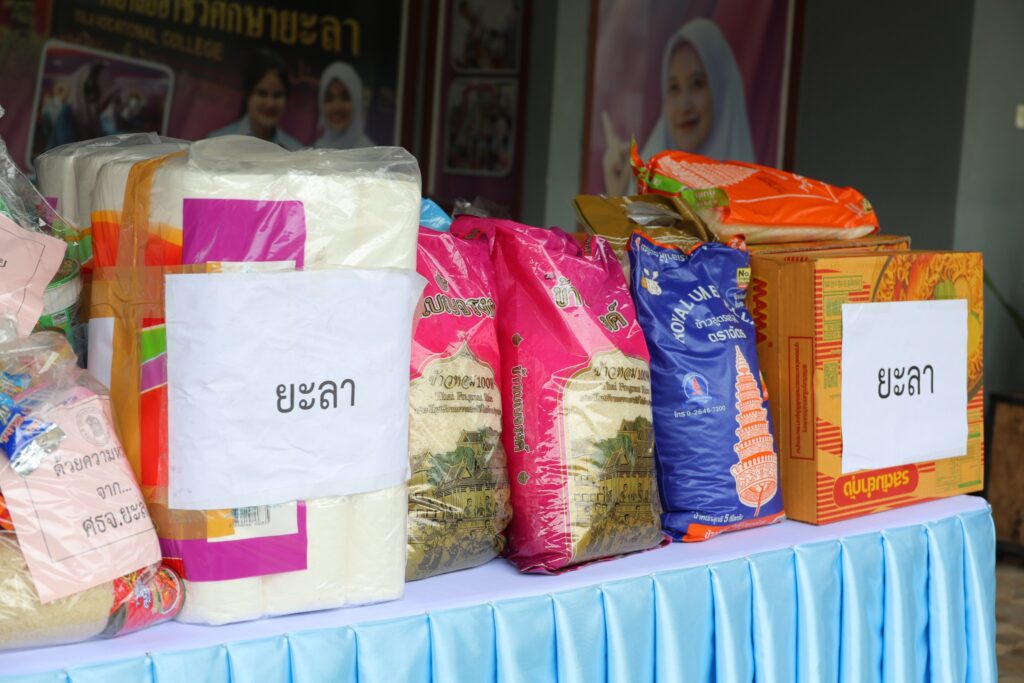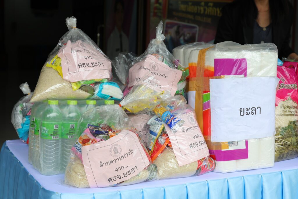 นางประกายแก้ว ศุภอักษร ผู้อำนวยการวิทยาลัยอาชีวศึกษายะลา พร้อมด้วยคณะผู้บริหาร ให้การต้อนรับ นายสมพงศ์ พละไชย ศึกษาธิการจังหวัดยะลา พร้อมคณะ ในโอกาสรับมอบสิ่งของช่วยเหลือและสร้างขวัญกำลังใจให้ผู้ประสบอุทกภัยในเขตพื้นที่ภาคใต้ ภายใต้ชื่อกิจกรรม “สำนักงานปลัดกระทรวงศึกษาธิการ ส่งต่อน้ำใจ ช่วยเหลือผู้ประสบอุทกภัย” เพื่อนำไปช่วยเหลือและบรรเทาความเดือดร้อนให้แก่บุคลากรทางการศึกษา และนักเรียน นักศึกษา วิทยาลัยอาชีวศึกษายะลา ณ อาคารอำนวยการ วิทยาลัยอาชีวศึกษายะลา