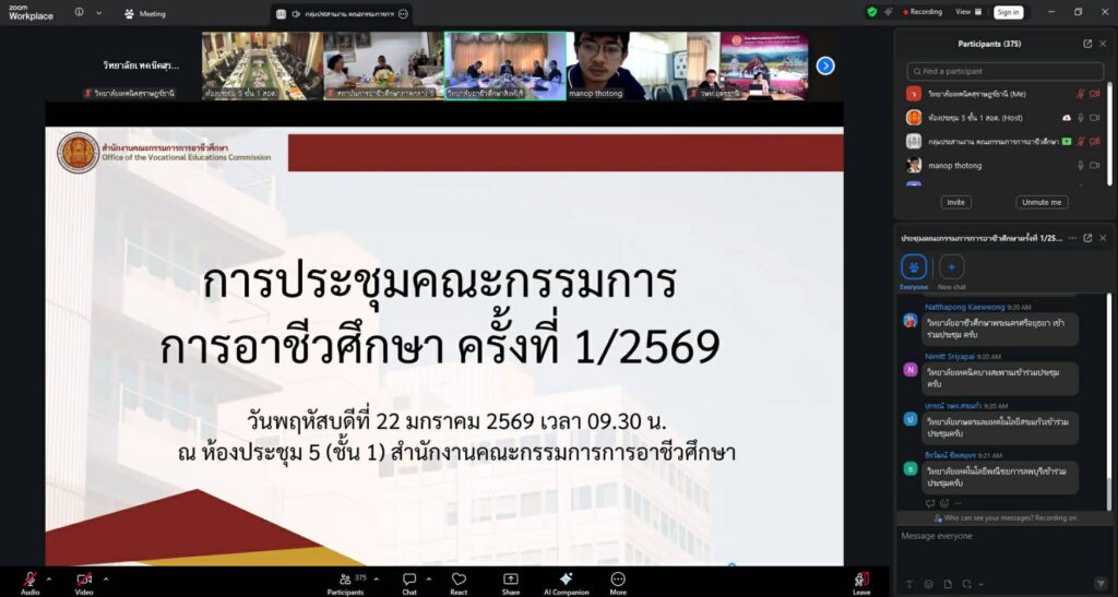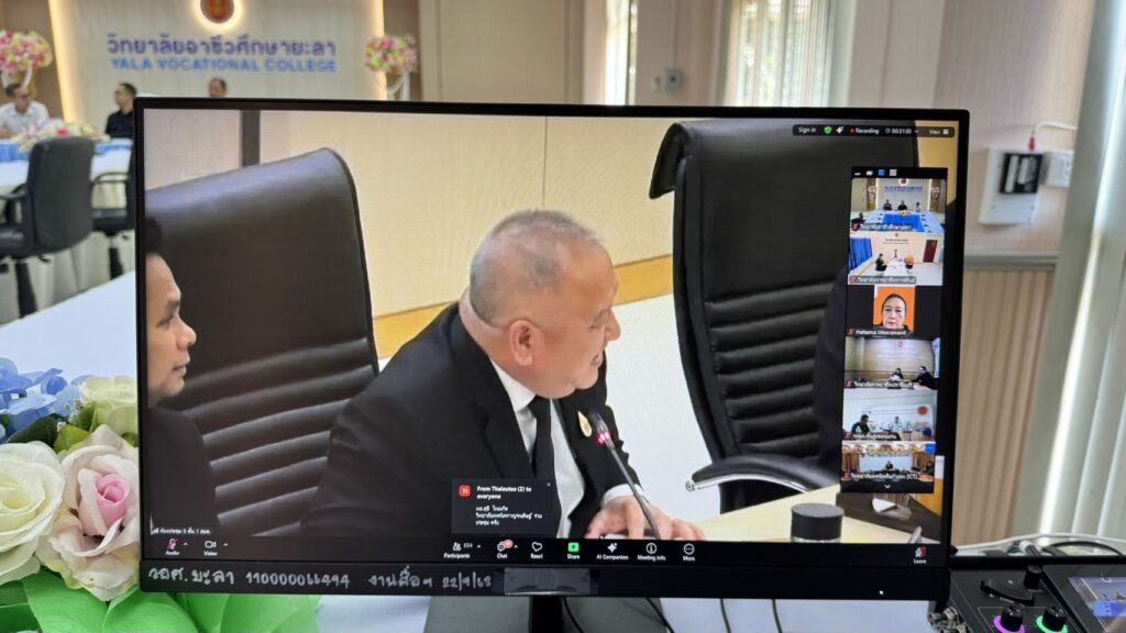 นางประกายแก้ว ศุภอักษร ผู้อำนวยการวิทยาลัยอาชีวศึกษายะลา มอบหมายให้ เอกองค์ หลงราม รองผู้อำนวยการฯ ฝ่ายแผนงานและความร่วมมือ, นายวสุชากร แก้วไฝ รองผู้อำนวยการฯ ฝ่ายวิชาการ และ นายเสรี ภักดี รองผู้อำนวยการฯ ฝ่ายพัฒนากิจการนักเรียน นักศึกษา เข้าร่วมการประชุมผู้บริหารสำนักงานคณะกรรมการการอาชีวศึกษา ครั้งที่ 1/2569 ผ่านระบบออนไลน์ (ZOOM) ณ ห้องประชุมรวงผึ้ง อาคารอำนวยการ วิทยาลัยอาชีวศึกษายะลา
